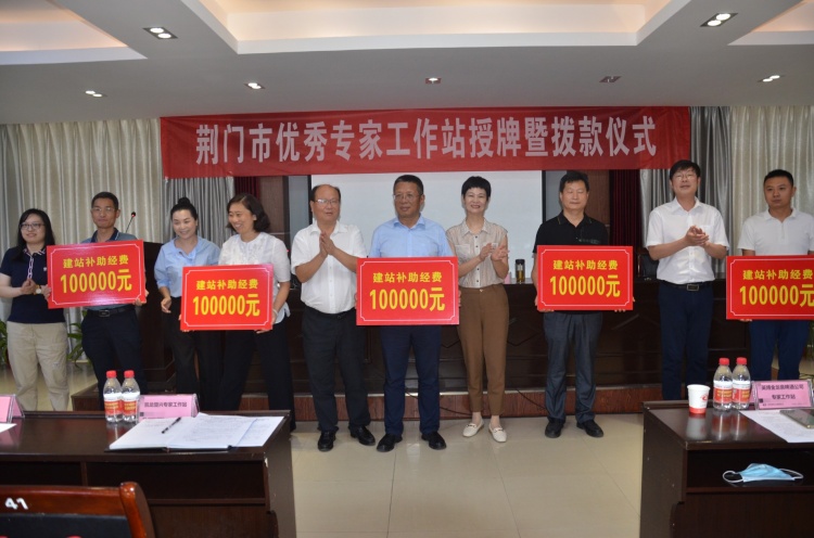 会上,荆门市科协主席朱才坤等为考核合格的5家工作站拨付建站补助资金10万元,并向湖北凯龙楚兴化工集团有限公司专家工作站、英博金龙泉啤酒(湖北)有限公司专家工作站颁授优秀专家工作站牌。