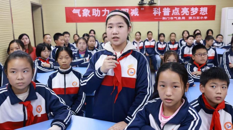 湖北荆门掇刀石小学同学学习气象科普知识