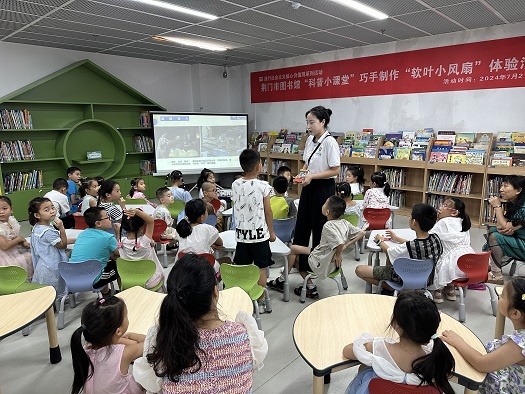 为进一步丰富少年儿童的科技知识,增强孩子们的科学兴趣和科技素养,7月27日,荆门市科协、市图书馆联合举办“科普小课堂——巧手制作“软叶小风扇”体验活动,吸引了50多组亲子家庭参加。