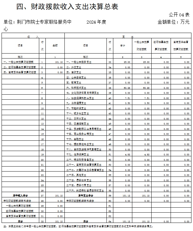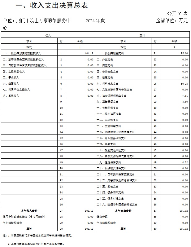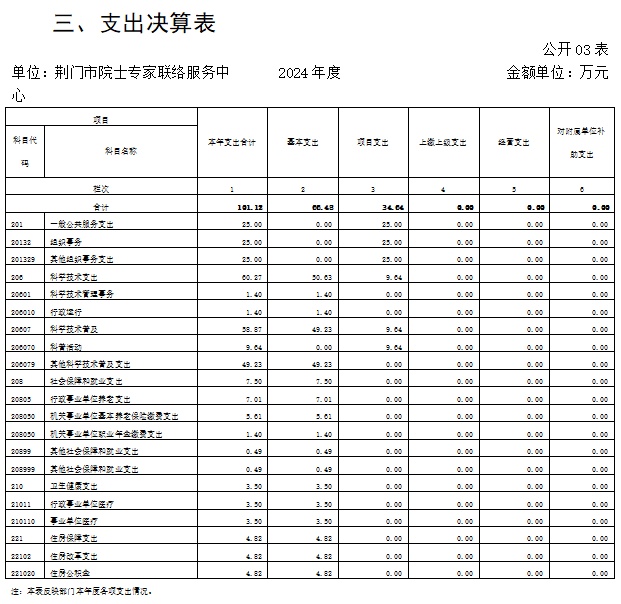 第二部分 荆门市院士专家联络服务中心2024年度部门决算表