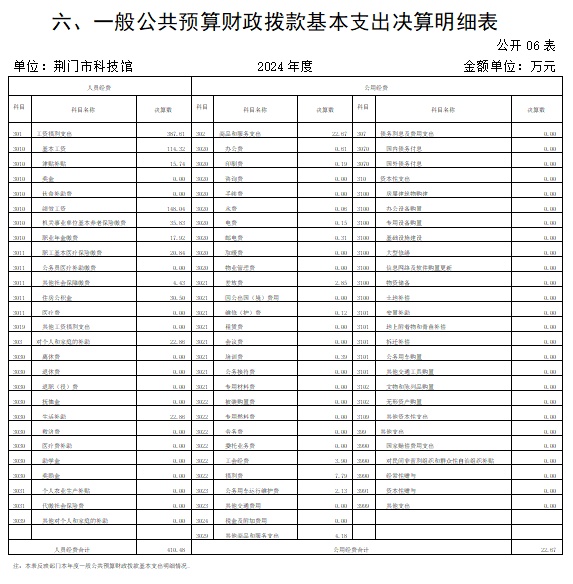 六、一般公共预算财政拨款基本支出决算明细表